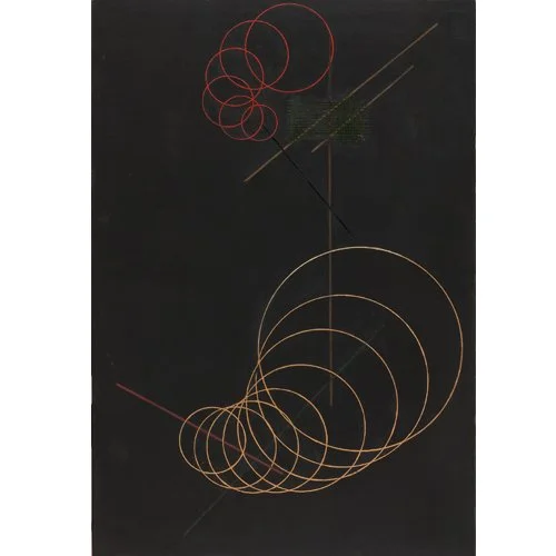 Rodtjenko utför tidigt serier av teckningar med hjälp av linjal och passare, som för att reducera handens roll och därmed kunna undersöka förhållandet mellan det subjektiva och det objektiva. Gesten, signaturen och linjens expressiva karaktär ger vika för ett uttryck som förefaller komma ur redskapen själva, och då han 1917 blickar tillbaka mot dessa första experiment och hävdar han att tavlan därefter upphörde