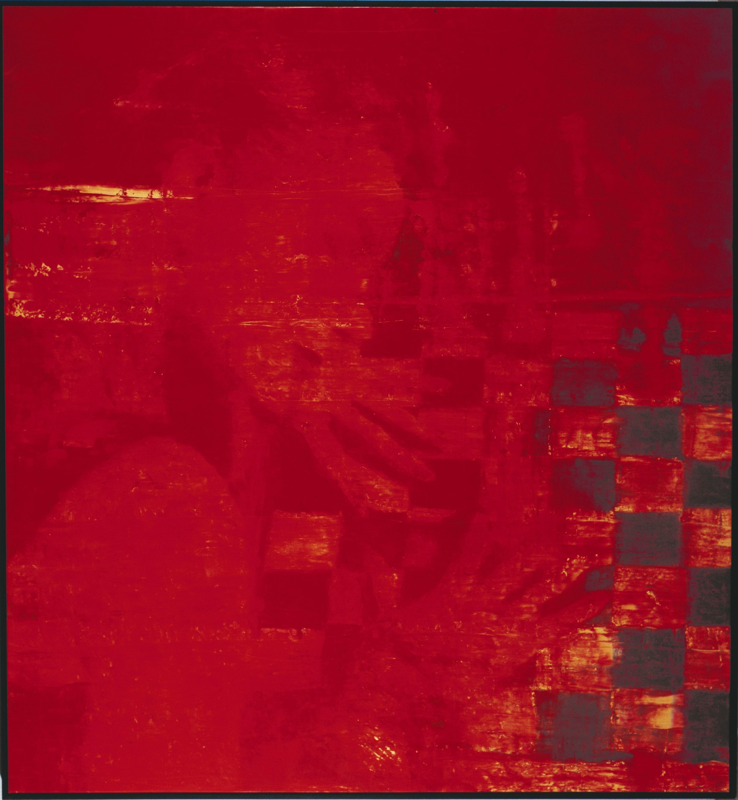 Från och med 1993 följer så hans serie av röda målningar. Även här finns fotografiska förlagor, som om monokromen endast kunde resultera från utsuddandet av något föregående, eller kanske som framkallandet av en koloristisk energi som funnits latent i den första bilden.[7] Feuk ser i de röda målningarna en dröm om kärlek, men också en tvetydighet: är det en åkallan eller ett avsked? Det röda signalerar på ett plan en närhet och närvaro, samtidigt som användningen av en metallrakel som dras över den ännu inte torra duken skapar ett drömskt avstånd. Att flera av de röda målningarna hämtar motiv från ruiner, som interiörerna från Pompeji, ger avståndet ett historiskt djup, och samtidigt en ”sugande blick mot intigheten” (306) som indikerar ett medvetande om dödens närhet. Den röda färgen är full av motstridiga känslor: närhet, avstånd, död, sinnlighet – som Feuk säger, mer en inbjudan till att drömma än något som tillåter oss att avgöra om det vi uppfattar stämmer eller ej.