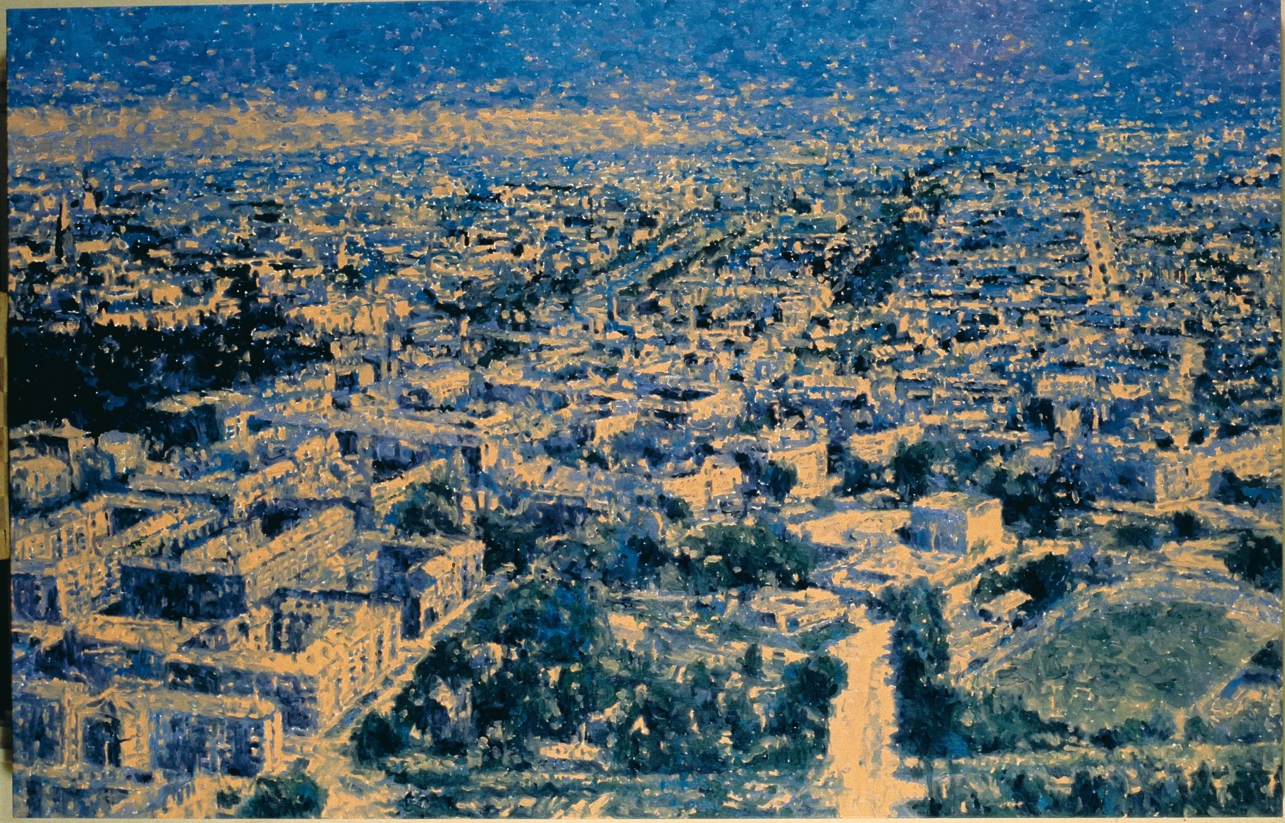 Landskapen skulle sedan bli till urbana landskap, som i Billgrens Cityscapes från andra hälften av åttiotalet, där föreställande drag återkommer, collage fungerar som förlagor, och dubbelexponeringar och överlagrade bildskikt används på liknande sätt som i Paris. I Cityscape, Malmö (1987) får flygfotot bilda utgångspunkt för en labyrintisk bild som i övre delen övergår i ett blått flimrande ljus, som om staden skulle fortsätta i det oändliga. Liksom i Gerhard Richters närliggande Stadtbilder omvandlas fotografiernas detaljskärpa till ett dis som upplöser de fasta formerna, men också återför dem till natur, som i Terrain vague från samma år – vilket utgör ett förebud om det monokroma måleri som utgör nästa steg under nittiotalet.