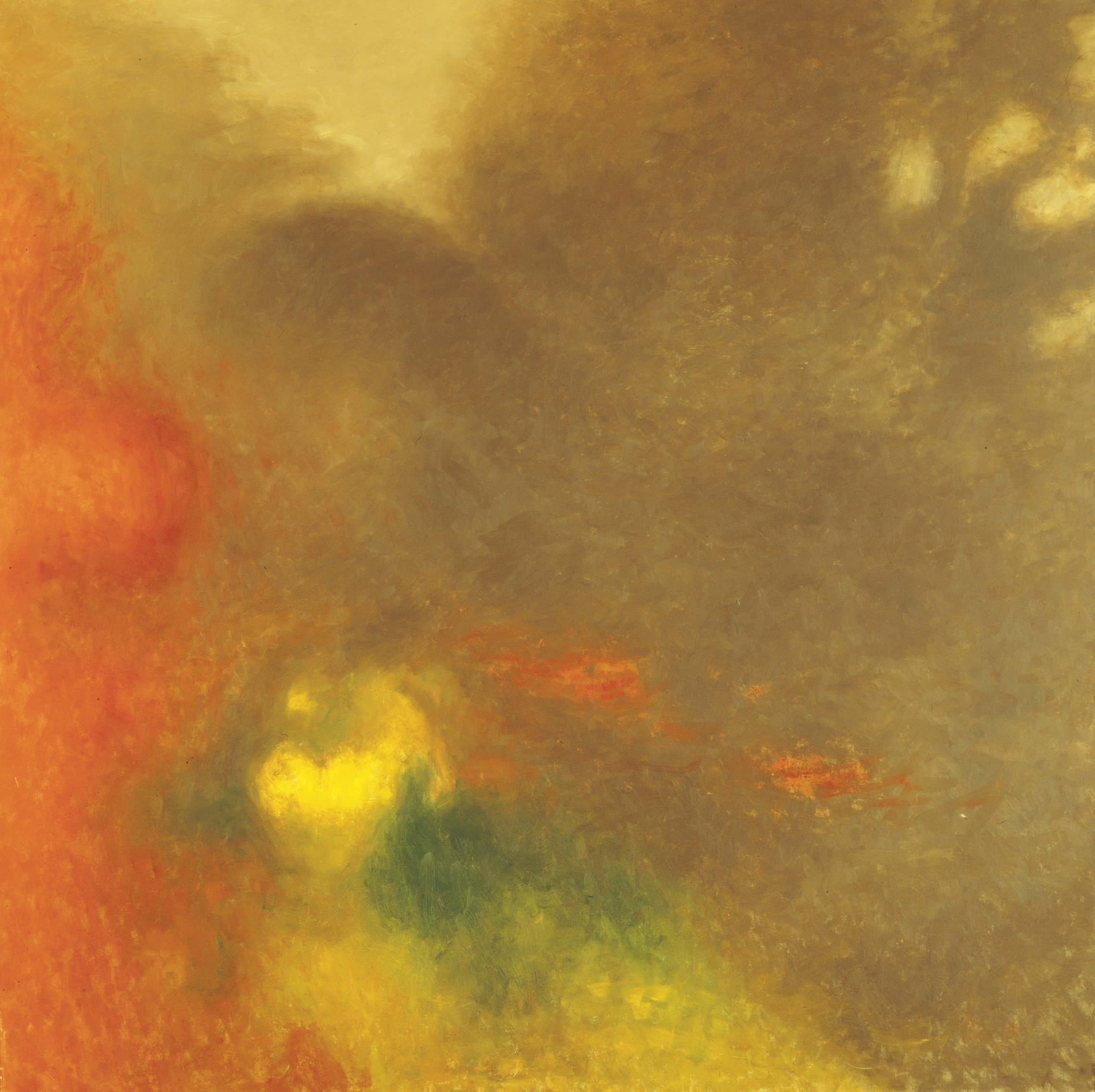 Om anknytningen till musik ger Feuk en annan ingång till den idé om fragmentet som var central i den litteraturvetenskapliga omläsningen av romantiken, som bland annat kom uttryck i temanumret av Kris (nr. 23–24, 1983, där Billgren också medverkade), så får den ändå två funktioner. Chopin finns i bakgrunden till collagen, liksom Schumann, vilka båda, som Billgren själv skriver, visar på möjligheten att göra avsteg från ”verkets princip”, att röra sig mot en ”uppfordrande mångfald som skiljer sig från den mångtydighet man stöter på hos ett ’väl sammanhållet’ konstverk” (cit. på 251f). Men för Feuk förblir collagen ändå – och kanske just därför – sidostycken och han vänder sig mot Lars Nittves tes att de skulle utgöra grundprincipen hos Billgren,[5] vilket är en av de få gånger då tidigare uttolkare apostroferas direkt. För Nittve visar oss Billgren i litografiserien Romantiska landskap, som följde på collagen, ett ”landskap utan natur”, en konst om konst, medan Feuks tar utgångspunkt i tre målningar, Verborgenheit (1982), Occident och Orient (båda 1983), som visades tillsammans på Galleri Asbaek i Köpenhamn. I Nittves läsning negerar målningarna varandra, de falsifierar och upphäver varandra i tur och ordning, och därmed också idén om ett enhetligt bakomliggande subjekt; för Feuk finns lika mycket en anknytning till natur, som i Occident, där han ser ”strån och stjälkar, detaljer som kan påminna om torkade blomställningar eller frökapslar” (258); Nittve ser spår av Monet, medan Feuk – utan att för den skull förneka referensen till Monet – anar ett ogenomskinligt djup. I Verborgenheit (titeln kommer från en dikt av Mörike, tonsatt av Hugo Wolf), enas dock Feuk och Nittve i att se ett diffust töcken, något ”romantiskt ouppnåeligt” (260), vilket vore en enhet, låt vara transcendent, som skulle motsäga collage-principen.