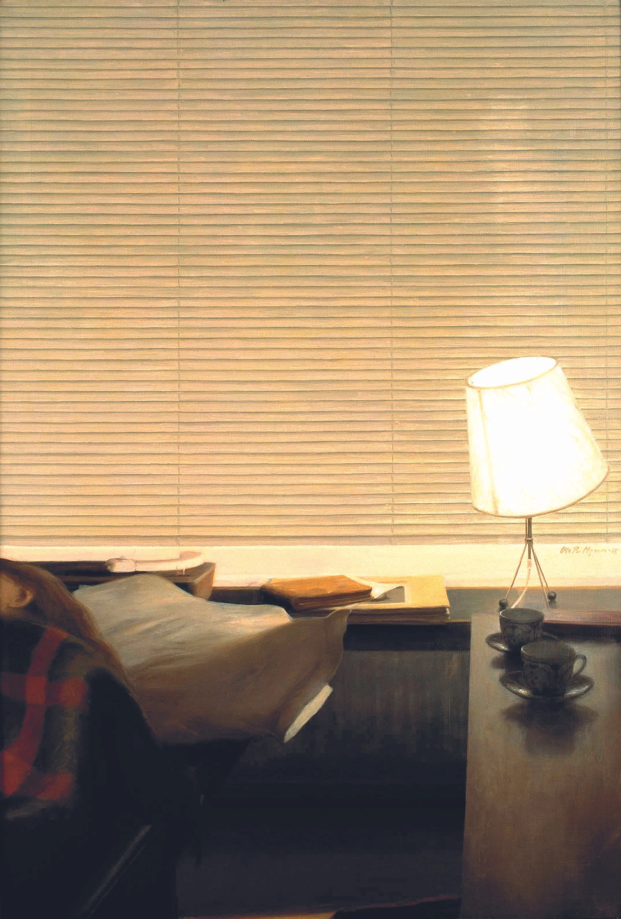 Det är en sådan laddning som Feuk vill finna i Billgrens interiörer, och som sedan i den följande fas som han sammanfattar under rubriken ”Rum för människan” skulle låta subjekten, både det egna och de som figurerar i bilderna, ta större plats. Detta tar här redan form i de motiv som härrör från den egna bostaden, som i Persienn (1965): den kvinnliga gestalten är både närvarande och frånvarande, miljön verkar ”inte bara innesluten i sig själv, men bortdomnad, egendomligt frånvarande från sig själv”, samtidigt som den minutiösa återgivningen av persiennen som en närmast abstrakt yta har en stark sinnlig närvaro, som ”handlade det om att besvärja den frånvaro som målningen också berättar om” (123). Hos Billgren finner Feuk en värme och innerlighet som saknas i tidens övriga fotorealistiska måleri, även om den samtidigt suspenderas, hålls på avstånd, så att säga reflekteras bort av bildernas återkommande abstrakta fält.