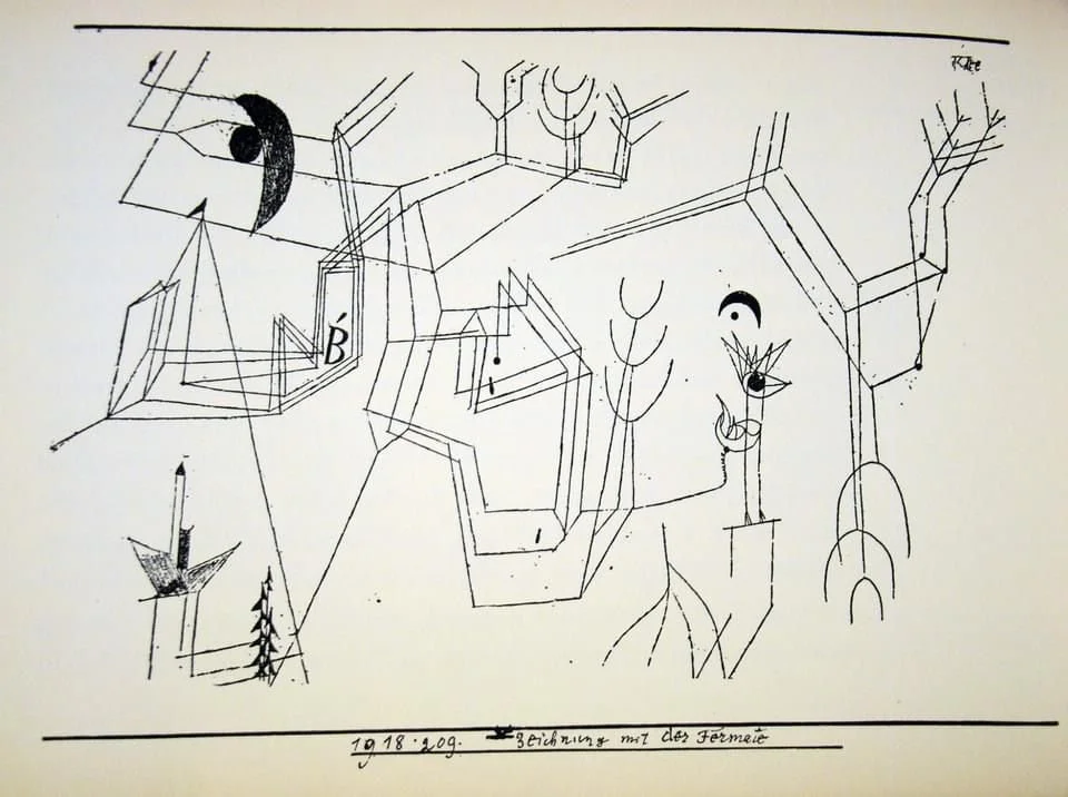 "Zeichnung mit der Formate", 1918. En av Paul Klees 61 illustrationer till Novalis text "Die Lehrlinge zu Sais" (Saïs lärjungar).